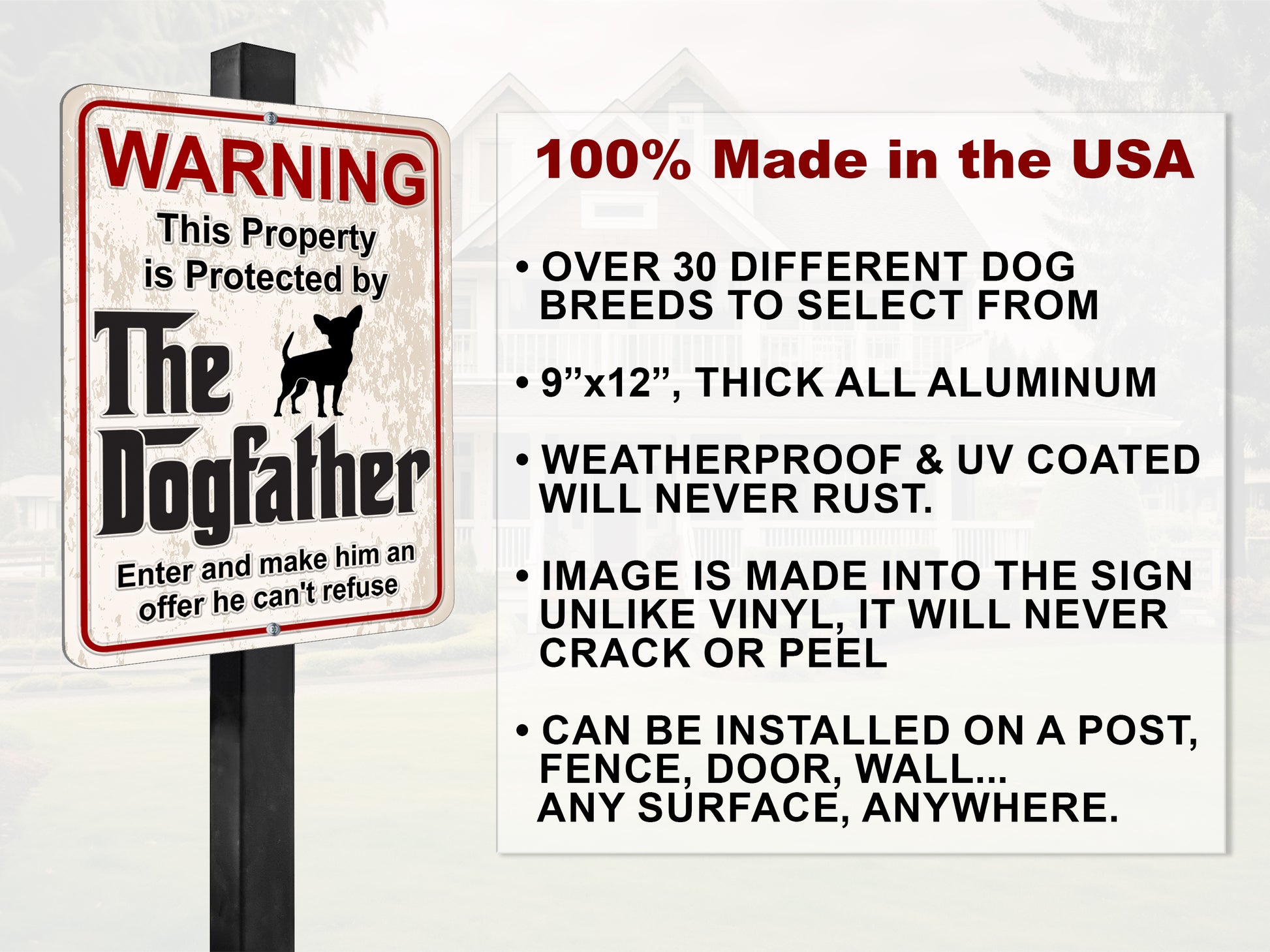 Aluminum Dogfather Sign, Beware of Dog, Do Not Enter, No Trespassing, Yard Sign, Home Décor, Chihuahua